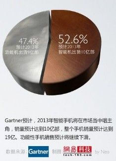 IDC在一份市场调研报告中预测,在2013年,全球智能手机的销售量预计将超过9亿部,在整个手机市场总销售量中所占的份额将超过半数。