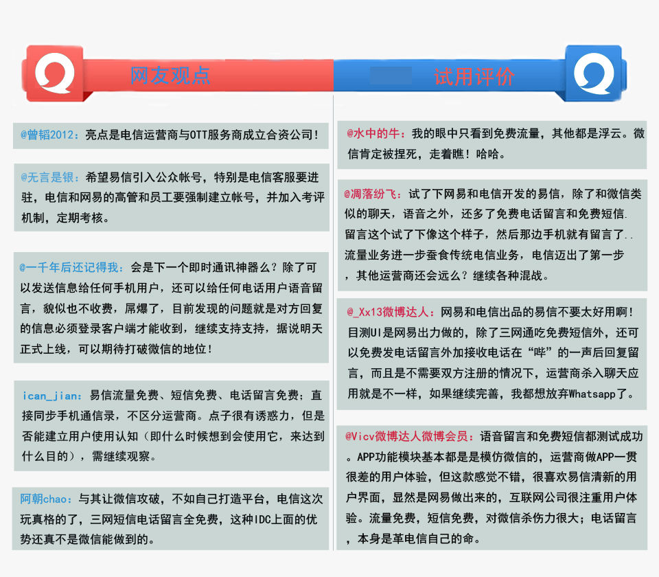 易信,是电信和网易共同打造的新一代移动即时通讯社交产品,充分融合双方优势,兼具以用户体验为核心的互联网基因、安全稳定、通信能力强大的运营商优势,与市场上同类产品相比具备先天优势。